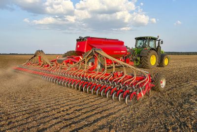 Mit dem Opus stellt Väderstad eine neue Grubberbaureihe vor, die den Boden bis zu 40 cm tief bearbeiten kann. Mit 27 cm Strichabstand, Zinken die über drei Balken verteilt sind und einer Rahmenhöhe von 80 cm kommt der Opus auch mit großen Mengen organischer Substanz bei einem moderaten Zugraftbedarf zurecht. Mit bis zu 700 kg Auslösedruck, der sich hydraulisch verstellen lässt, hält der Opus auch auf schweren Böden die Arbeitstiefe. Eine große Auswahl an Scharen und Leitblechen ermöglicht es, den Grubber an die jeweiligen Bedingungen anzupassen. Erhältlich sind die Schare jetzt auch in einer hartmetallbeschichteten Marathon in 50 und 80 mm Breite, welche eine acht- bis zehnfache Standzeit gegenüber normalen Scharen aufweisen sollen. Für den Opus stehen zwei Walzen zur Wahl, die bewährte Väderstad Stahlwalze mit 600 mm Durchmesser sowie eine Doppelwalze mit U-Profil 575 mm Durchmesser, die sich besonders bei feuchten Bedingungen eignet. Diese Walzen sind austauschbar und können bei Bedarf auch ganz abgebaut werden. Der Druck auf die Walzen kann den Bedingungen angepasst werden. Der Opus ist in 6 und 7 Meter Arbeitsbreite erhältlich und soll ab Frühjahr 2015 produziert werden.