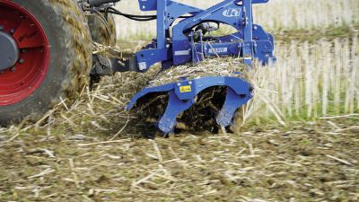 Die Kombinationsfederegge von Bremer Maschinenbau wurde weiterentwickelt und ist jetzt von 9 bis 15 m Breite erhältlich. Dieses Gerät kann sowohl bei der Stoppelbearbeitung wie auch bei der Saatbettbereitung eingesetzt werden. Auf die vordere Planierschiene, den Flexigrader, folgt eine fünfreihige Großfederzinkenegge und abschließend ein Planierstriegel sowie eine Reihe Federzinken. Damit lässt sich eine intensive Stroheinmischung, Bodenlockerung und Einebnung des Bodens erreichen. Längere Zinken in den Fahrspuren ersetzen einen Spurlockerer. Durch den Verzicht auf eine Walze kann die Federegge auch bei nassen Bedingungen eingesetzt werden. Optional ist bis 12 m Arbeitsbreite auch eine Packerwalze lieferbar. Der Zugkraftbedarf für die 15 m-Ausführung liegt bei etwa 285 kW.
