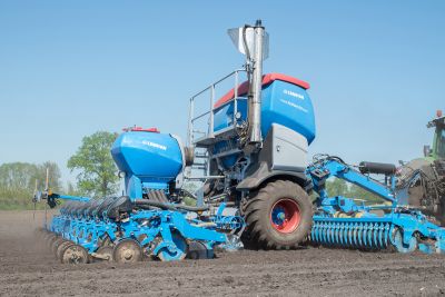 Für die Kombination mit der Kreiselegge KE 01 und den Kreiselgrubbern KG / KX 01 bietet Amazone jetzt die pneumatische Aufbausämaschine AD-P 01 Special mit 3 m Arbeitsbreite an. Dank der Schnittstelle QuickLink lässt sich das Bodenbearbeitungsgerät innerhalb weniger Minuten von der Aufbausämaschine trennen, um es im Soloeinsatz zu nutzen. Gewählt werden kann zwischen einem 850 l oder einem 1.250 l fassenden Saatgutbehälter. Als Scharsysteme stehen u. a. auch die RoTeC-Control-Schare mit Reihenabständen von 12,5 cm oder 15 cm zur Verfügung. Die Steuerung der Maschine kann wahlweise über den Bediencomputer AMADRILL+ oder ein ISOBUS-Terminal erfolgen. Die Fahrgassenschaltung erfolgt direkt am Segmentverteilerkopf und ist sehr flexibel an die Spurbreite und Reifenbreite anzupassen. Für die Rückverfestigung des Bodens kann die AD-P 01 Special wahlweise mit der Zahnpackerwalze PW 600, der Keilringwalze KW 580, der Keilringwalze mit Matrixreifenprofil KWM 600 sowie den Trapezringwalzen TRW 500 und TRW 600 ausgerüstet werden.