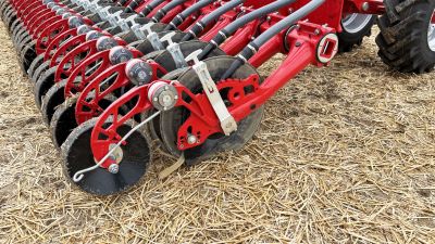 Mit der FACA-Packerwalze bietet Sky Agriculture eine neue Walze für den Frontanbau an. Diese ist speziell dafür vorgesehen,Zwischenfrüchte niederzuwalzen, ehe dann im Heckanbau eine Direktsaatmaschine wie die Sky Easydrill folgt. Die Stege auf der Walze haben einen Abstand von nur 144 mm und sollen die Pflanzen nur knicken, aber nicht schneiden. Dadurch bewegt diese Walze keinen Boden, um Unkräuter nicht zur Keimung anzuregen. Um die Wirksamkeit der Walze zu erhöhen, kann sie zusätzlich ballastiert werden. Die FACA- Packerwalze ist in verschiedenene Arbeitsbreiten zwischen 3,0 und 6,0 m lieferbar, wobei die Walze optional auch hydraulisch klappbar und selbstlenkend angeboten wird.
